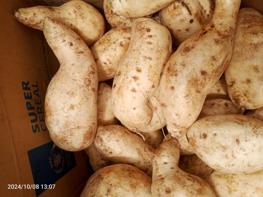Utilisée dans une variété de plats traditionnels, l’igname jaune peut être bouillie, frite, rôtie ou écrasée pour accompagner des sauces savoureuses telles que le ndolé ou la sauce tomate au poisson. Son goût unique et sa texture fondante en font un accompagnement parfait pour des repas complets et équilibrés. En plus de sa valeur culinaire, l’igname jaune est un aliment énergétique, idéal pour bien démarrer la journée ou recharger ses batteries.